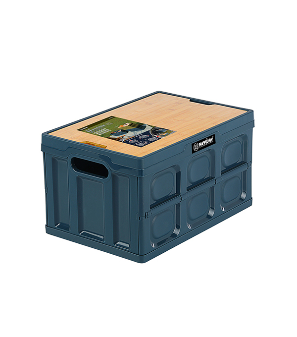 [KEYWAY]班布全功能摺疊箱(附竹蓋)-藍(一入)