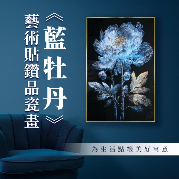 精緻藝術貼鑽晶瓷畫|《藍牡丹》黑|60x90尺寸